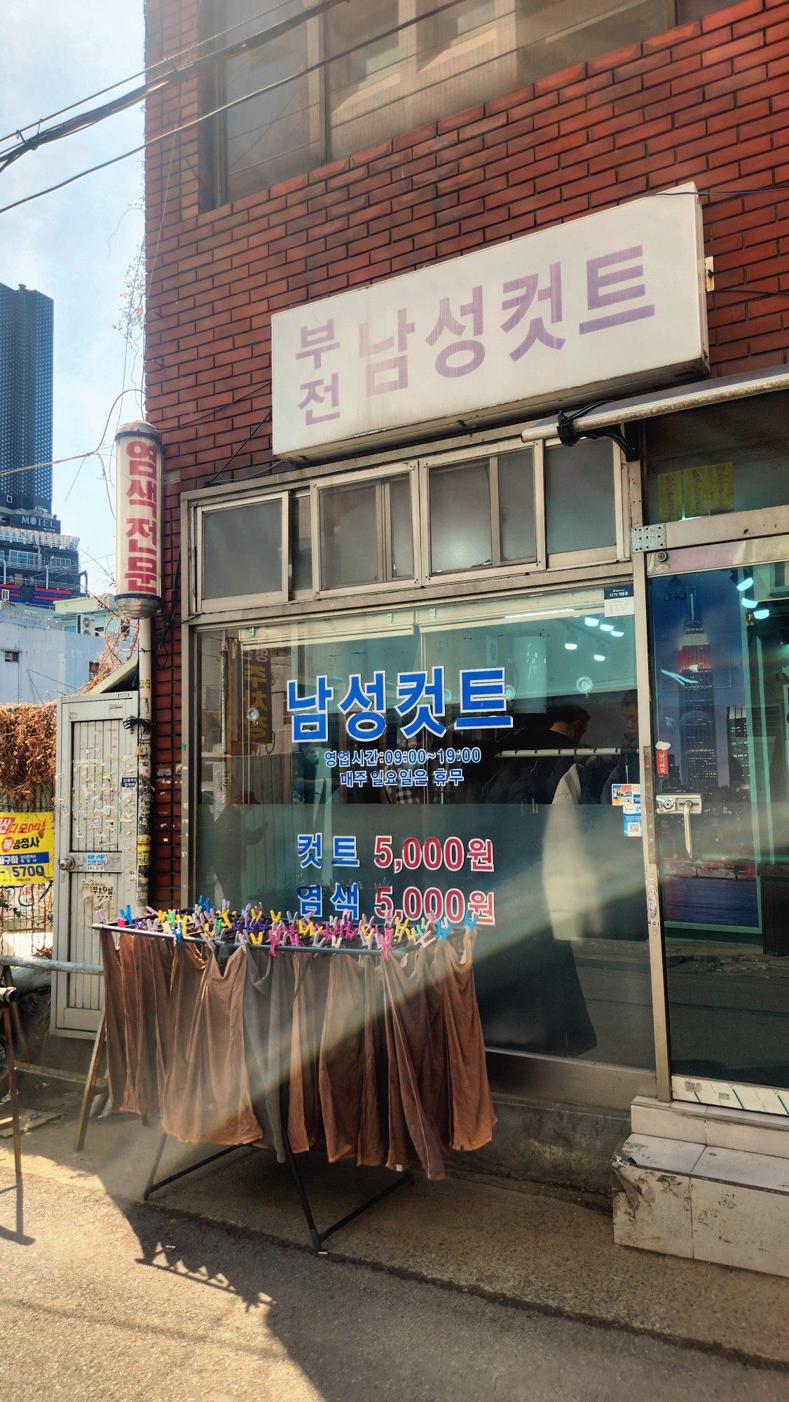 하지만 이곳 부전동 부전시장 인근 골목에는 시간이 멈춘 듯한 가격 단돈 5,000원에 수준급 커트를 제공하는 남성컷트 성지들이 모여 있습니다.