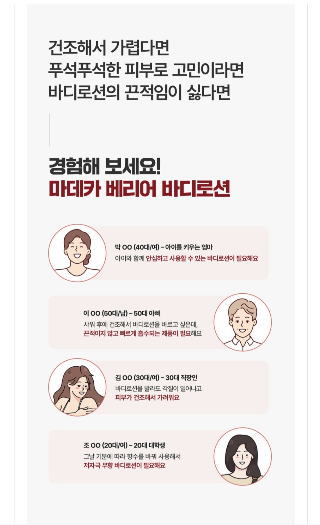 ♤ 건조 가려움증 고민러 (50대)밤마다 다리가 건조해서 가려워 잠을 설쳤는데 이 로션을 바른 뒤로 피부 장벽이 탄탄해진 게 느껴져요.