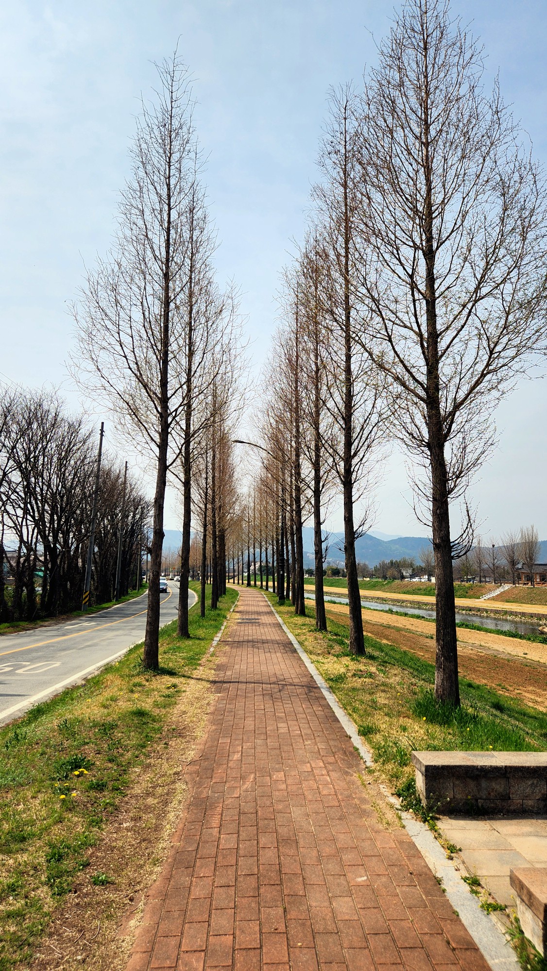 오릉 벚꽃길 옆으로는 남천이 흐르고 그 옆을 따라 길게 뻗은 메타세쿼이아 산책로가 이어집니다.