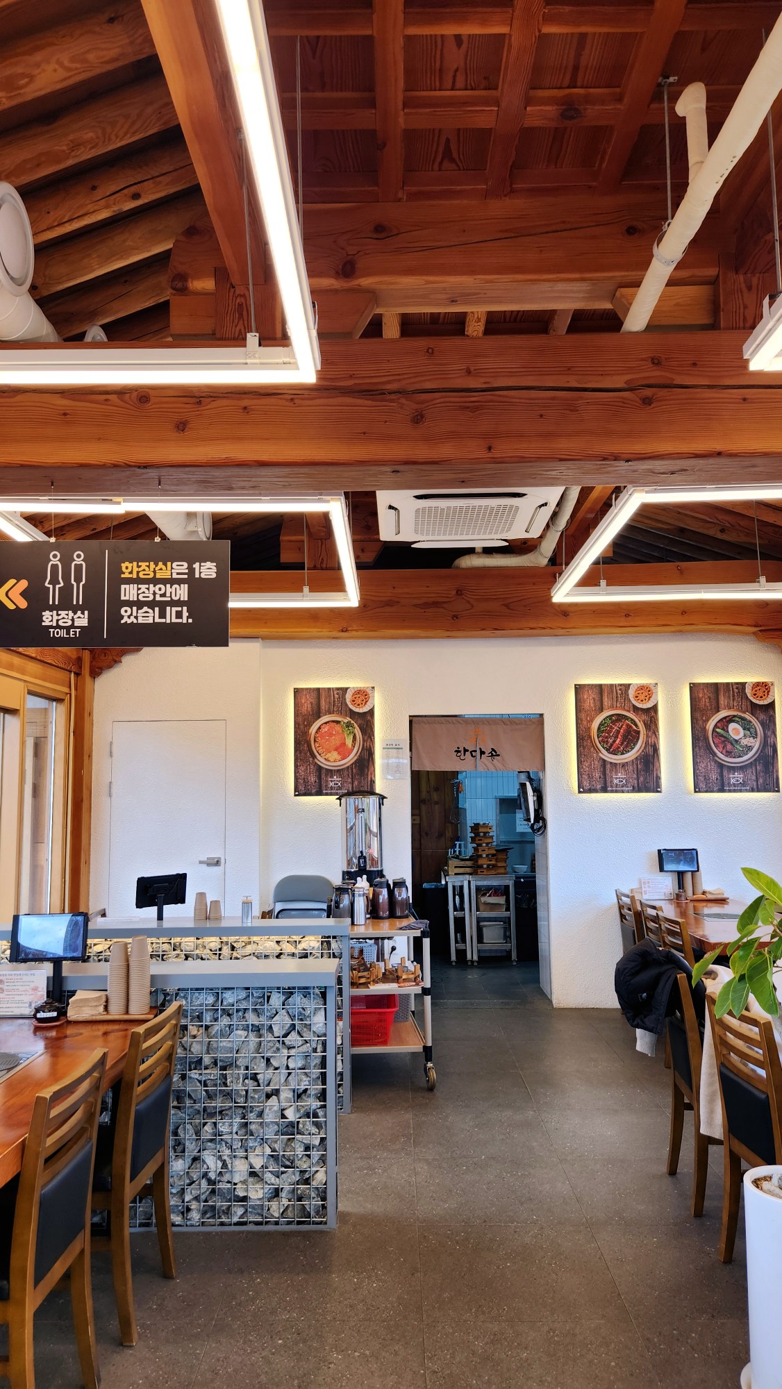 개비온 담장(돌망태)과 현대적인 타이포그래피가 어우러진 간판은 인스타그램 인증샷을 찍기에도 부족함이 없습니다.