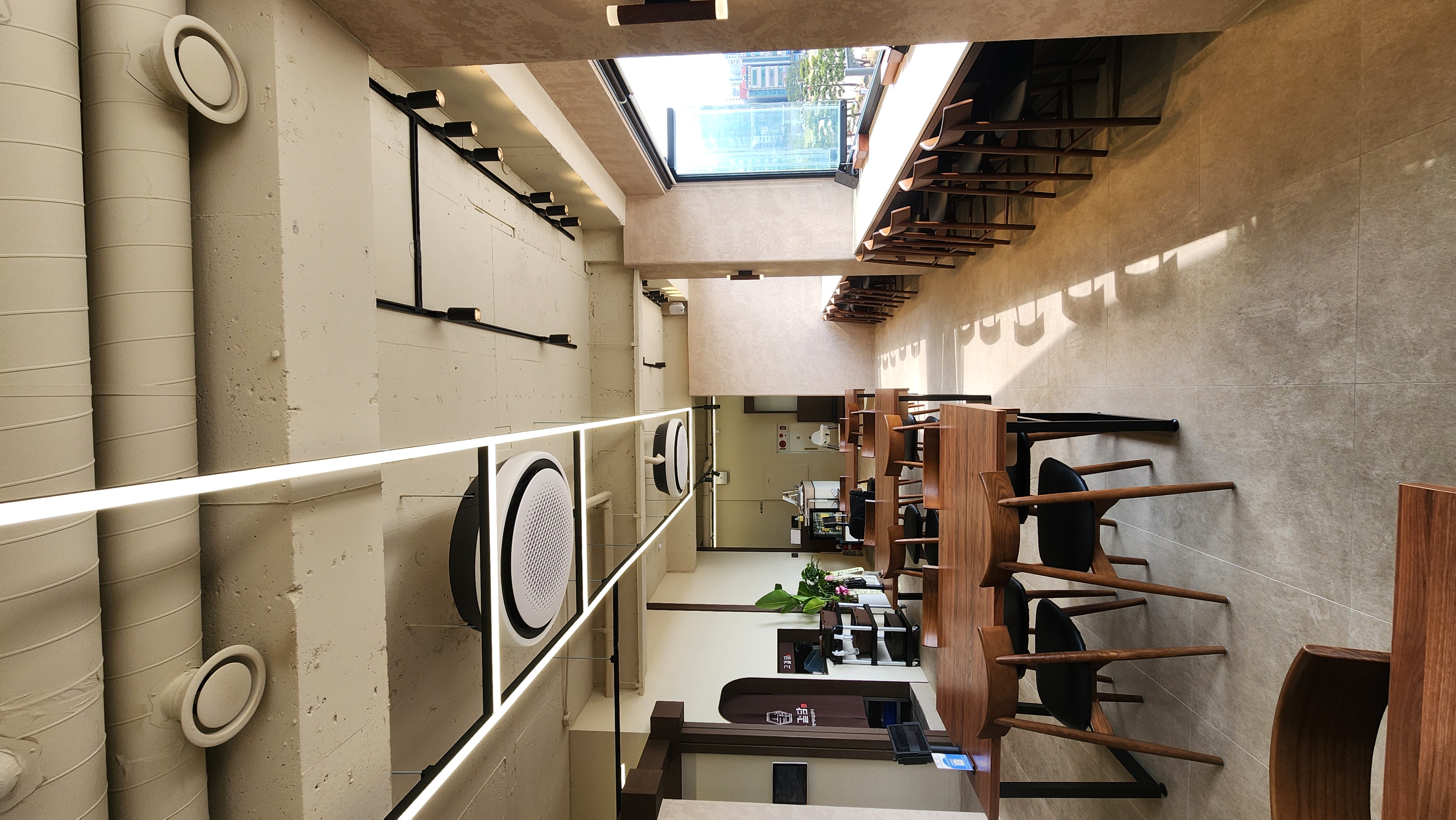 천장의 시스템 에어컨과 세련된 조명 배치는 쾌적한 식사 환경을 제공하죠.