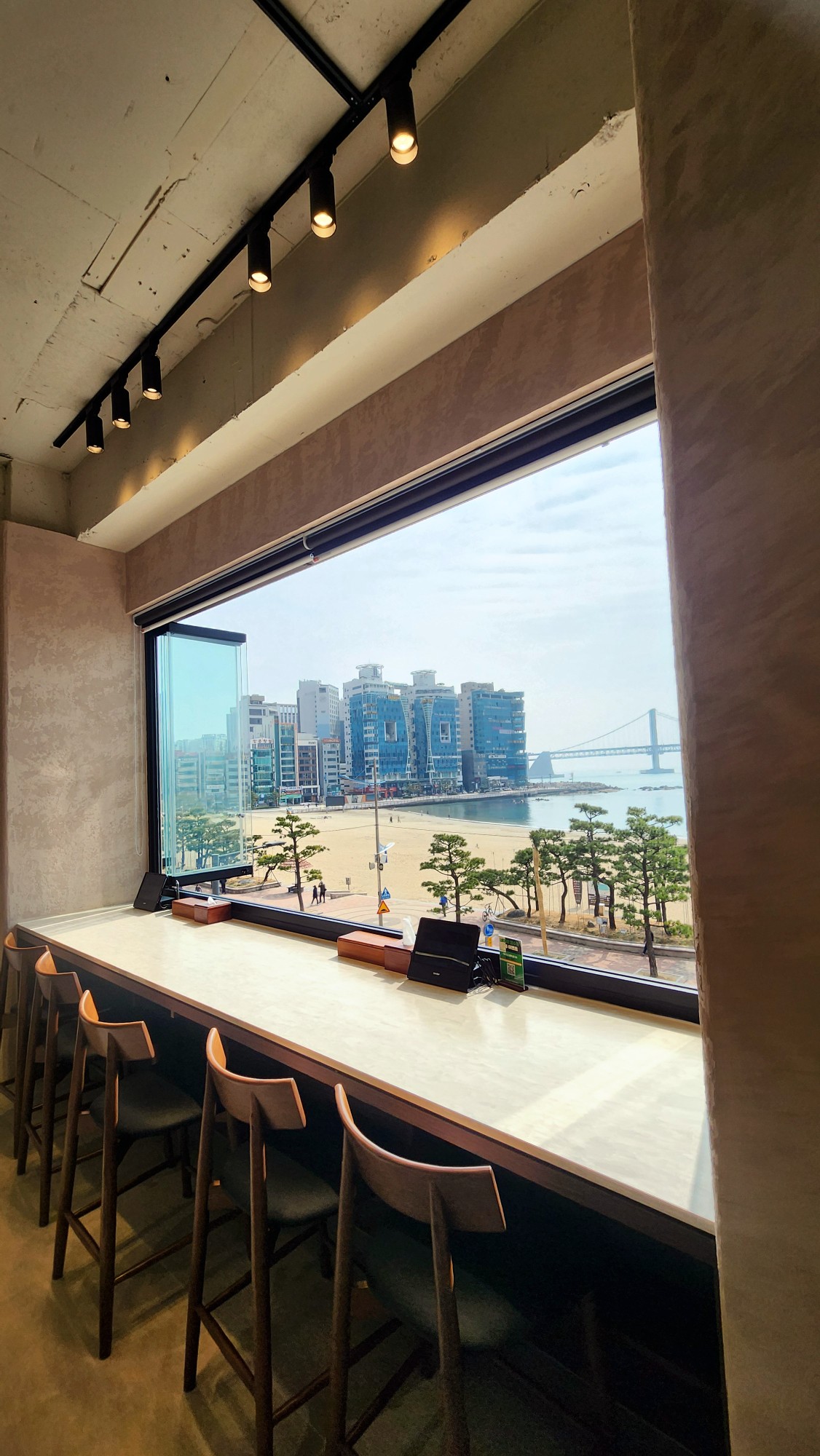 매장 안으로 들어서면 가장 먼저 눈을 사로잡는 것은 단연 광안대교 뷰입니다.