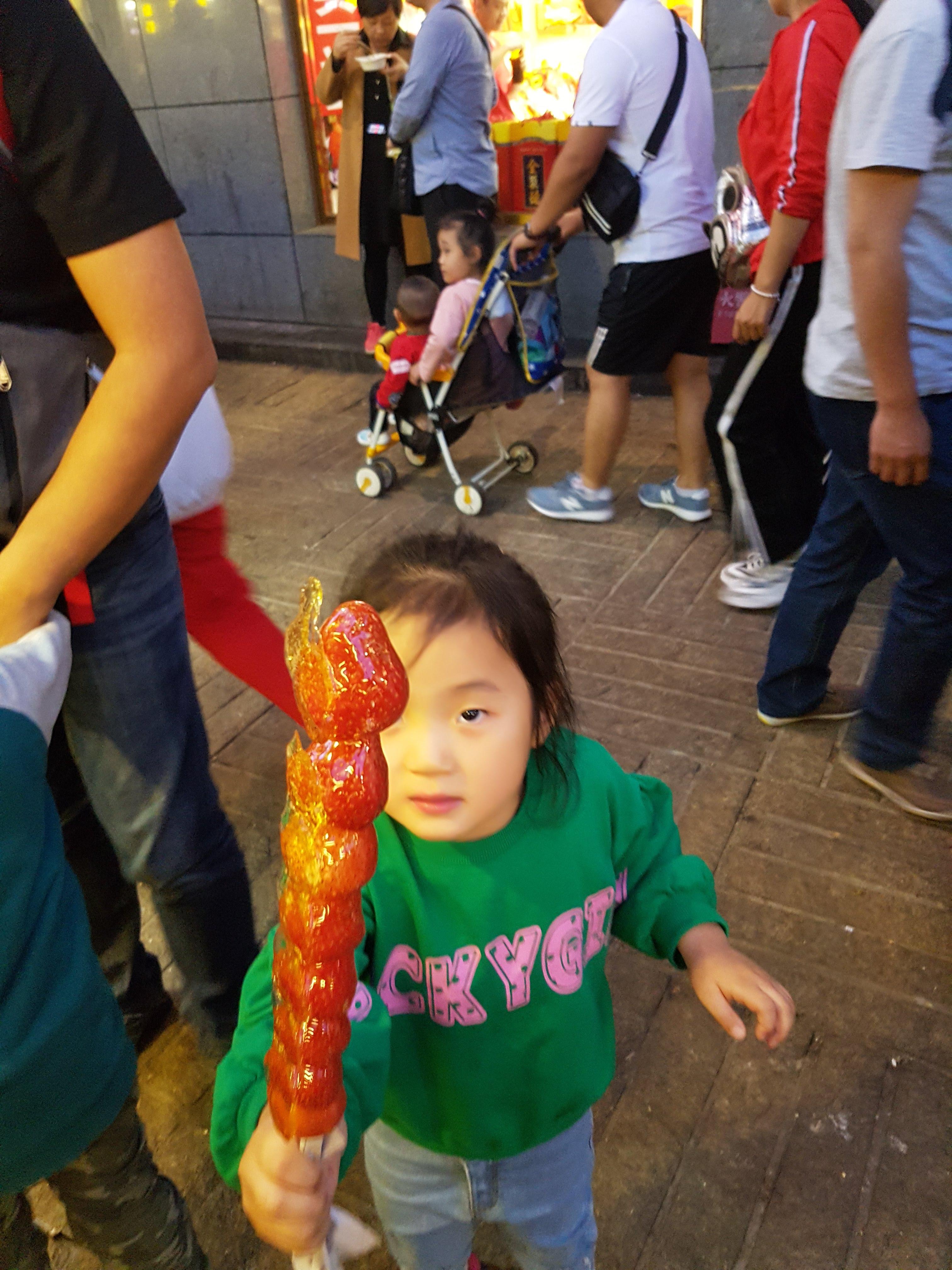 그리고 대륙의 야시장이라는 왕푸징 야시장에서 맛있는 것도 먹고 눈이 즐거운 볼거리도 보았다.