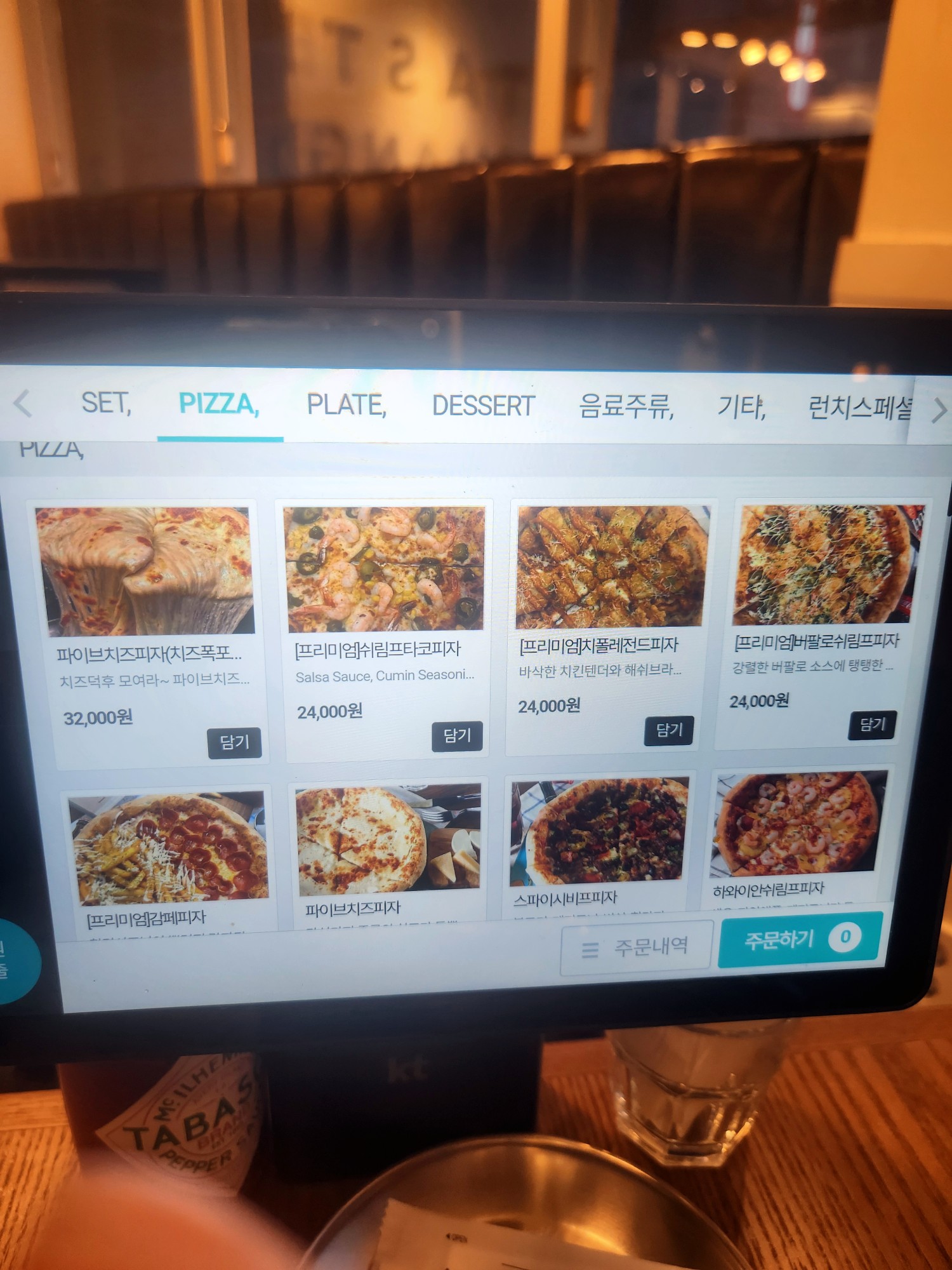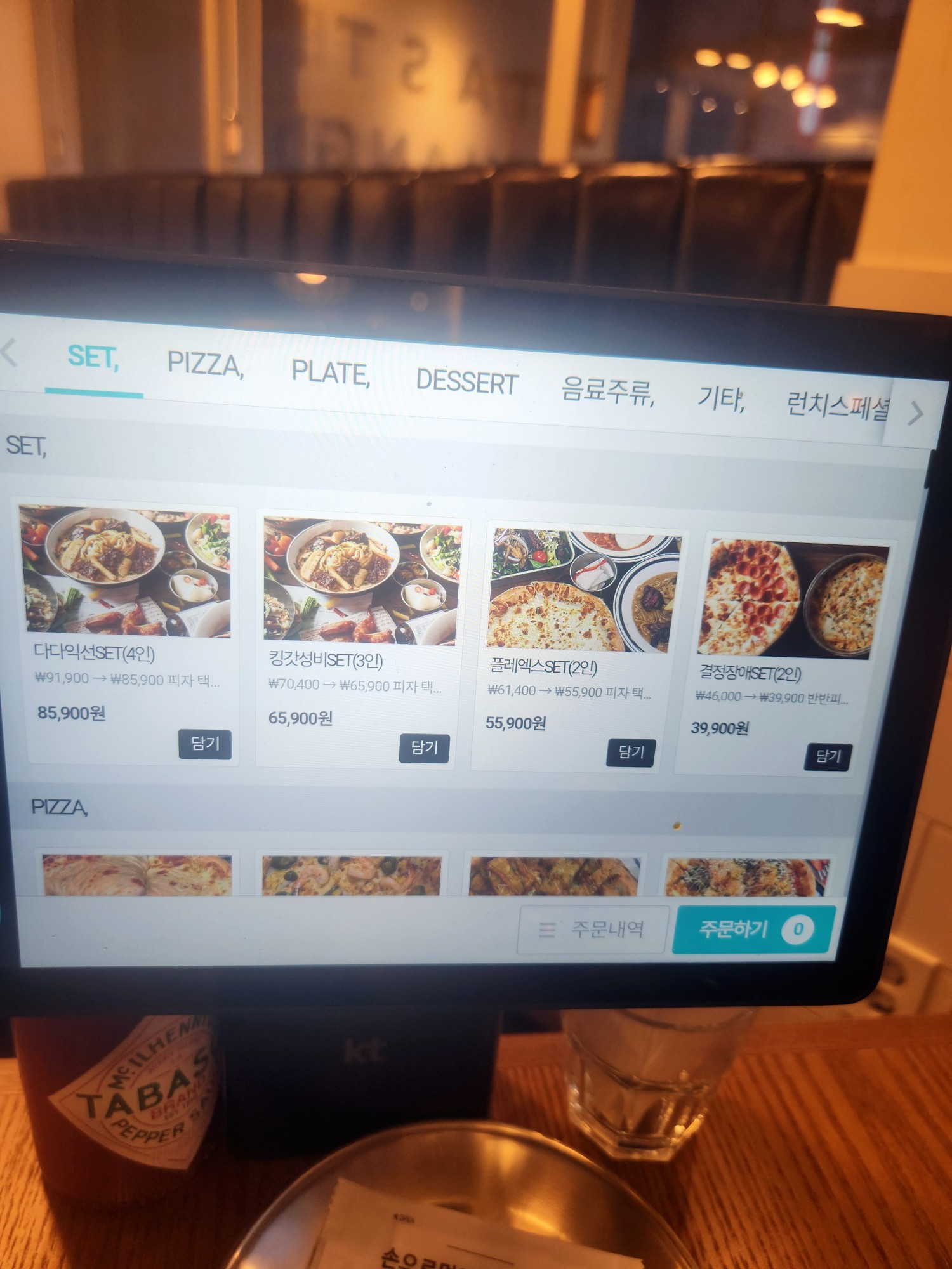자리에 앉으니 테이블마다 설치된 태블릿이 눈에 띄었습니다.