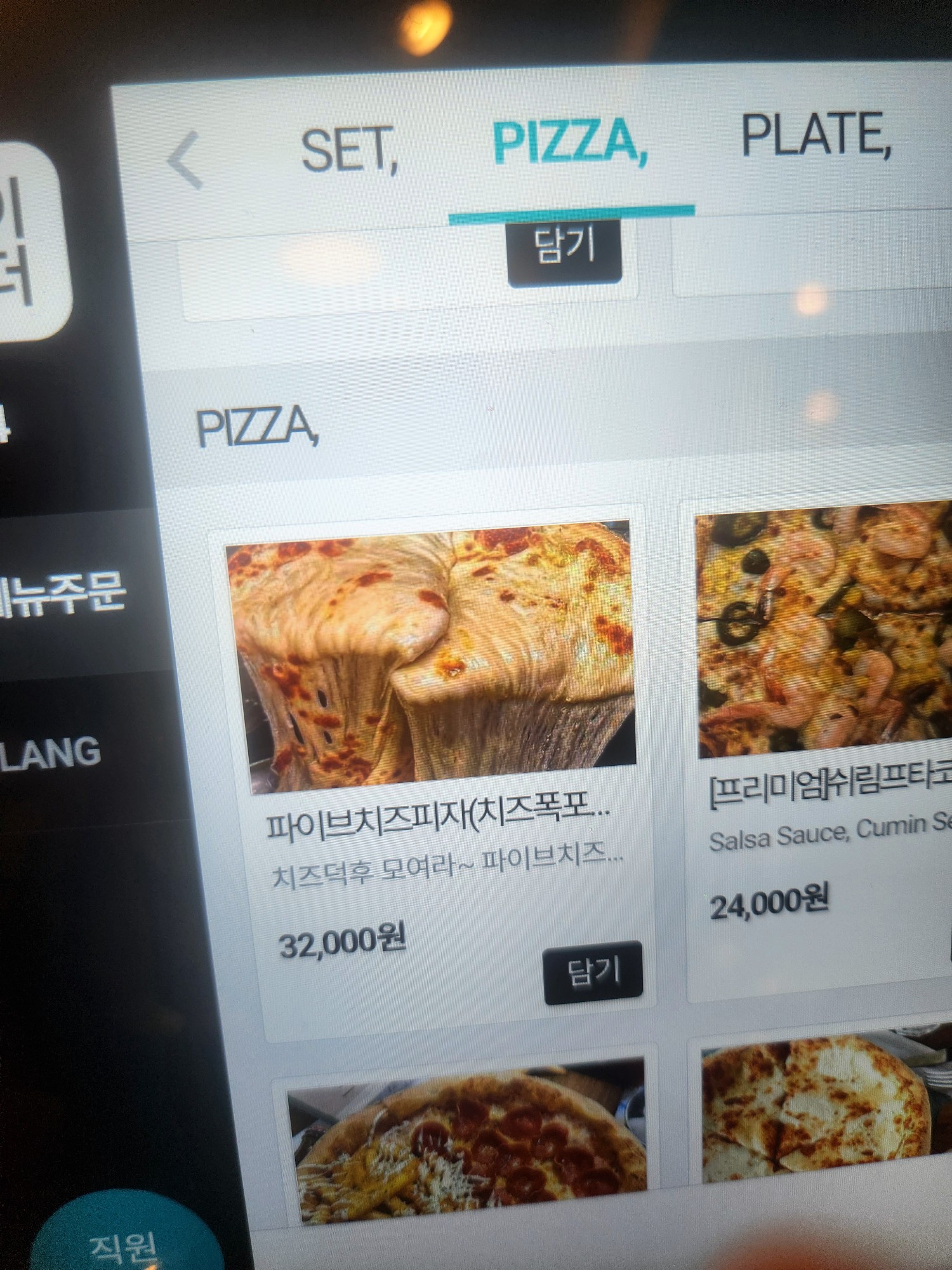 저희가 주문한 첫 번째 주인공은 파이브치즈피자였습니다.