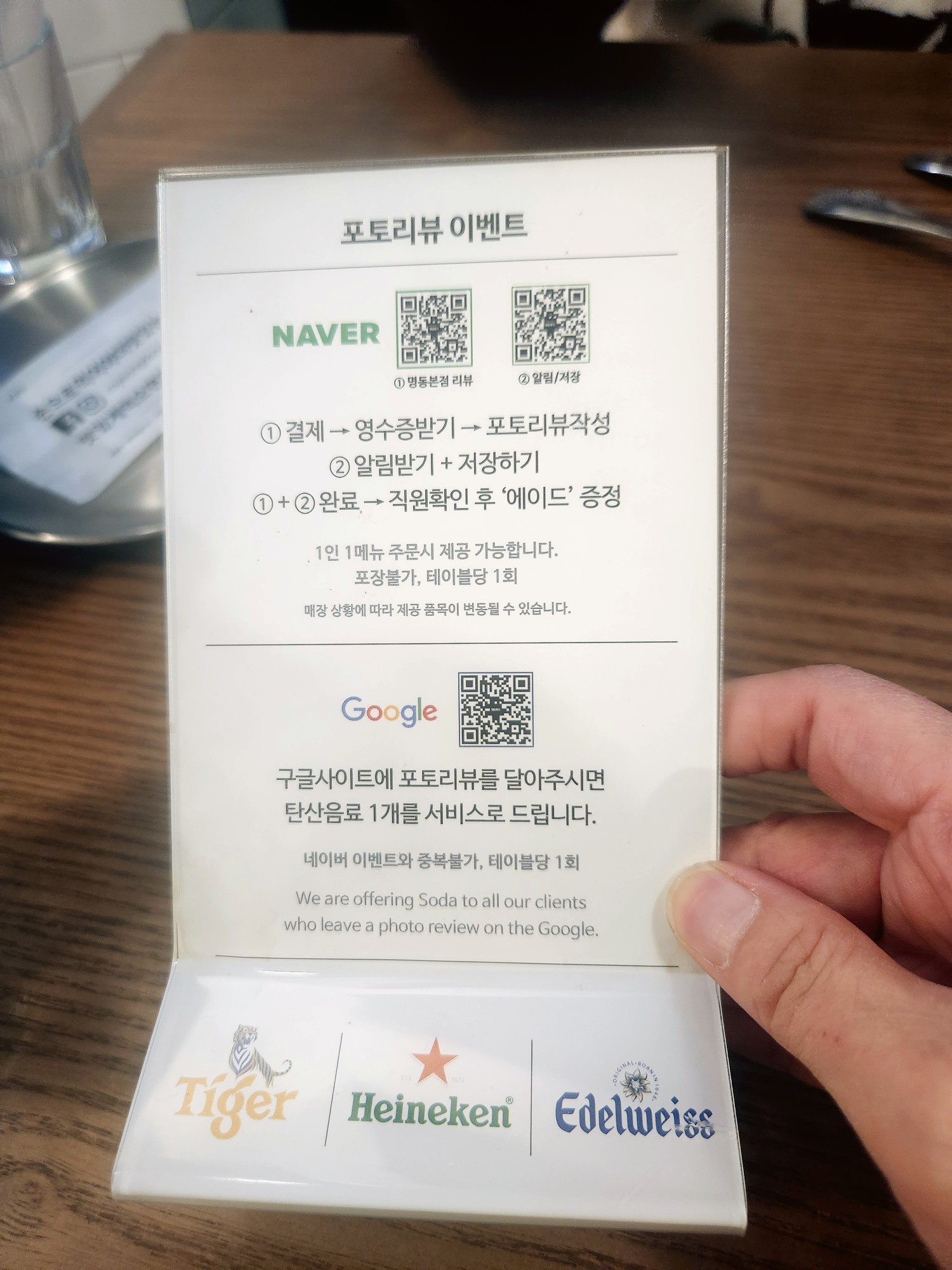 * 구글 포토리뷰 구글 지도에 리뷰를 남기면 탄산음료 1개를 서비스로 줍니다.