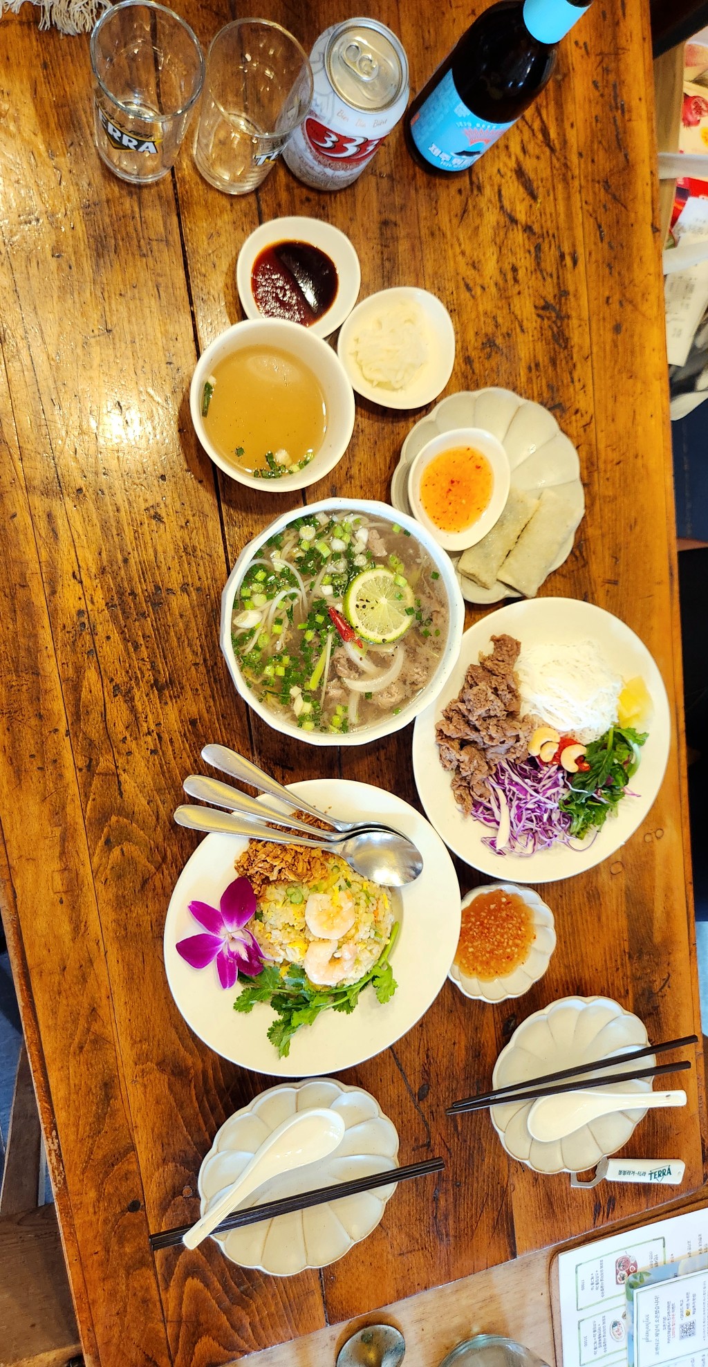 함께 곁들인 베트남 맥주 333과 사이공 맥주는 이국적인 분위기를 한층 더 끌어올려 주었습니다. 낮에 즐기는 가벼운 맥주 한 잔과 쌀국수의 조합은 그야말로 완벽한 휴식이었습니다.