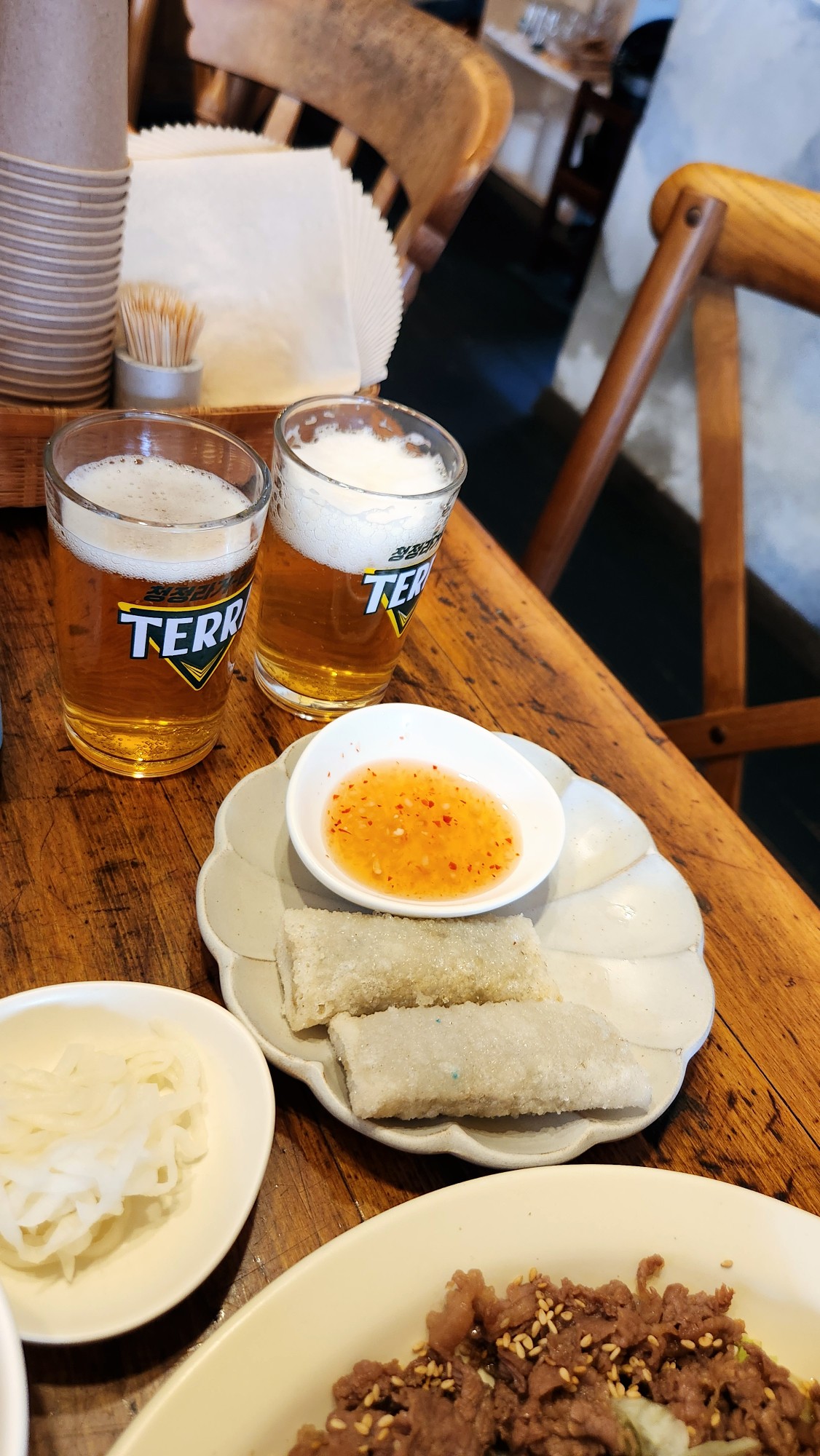 갓 튀겨진 에그롤은 겉은 바삭하고 속은 꽉 차 있어 씹을 때마다 고소함이 터져 나왔습니다.