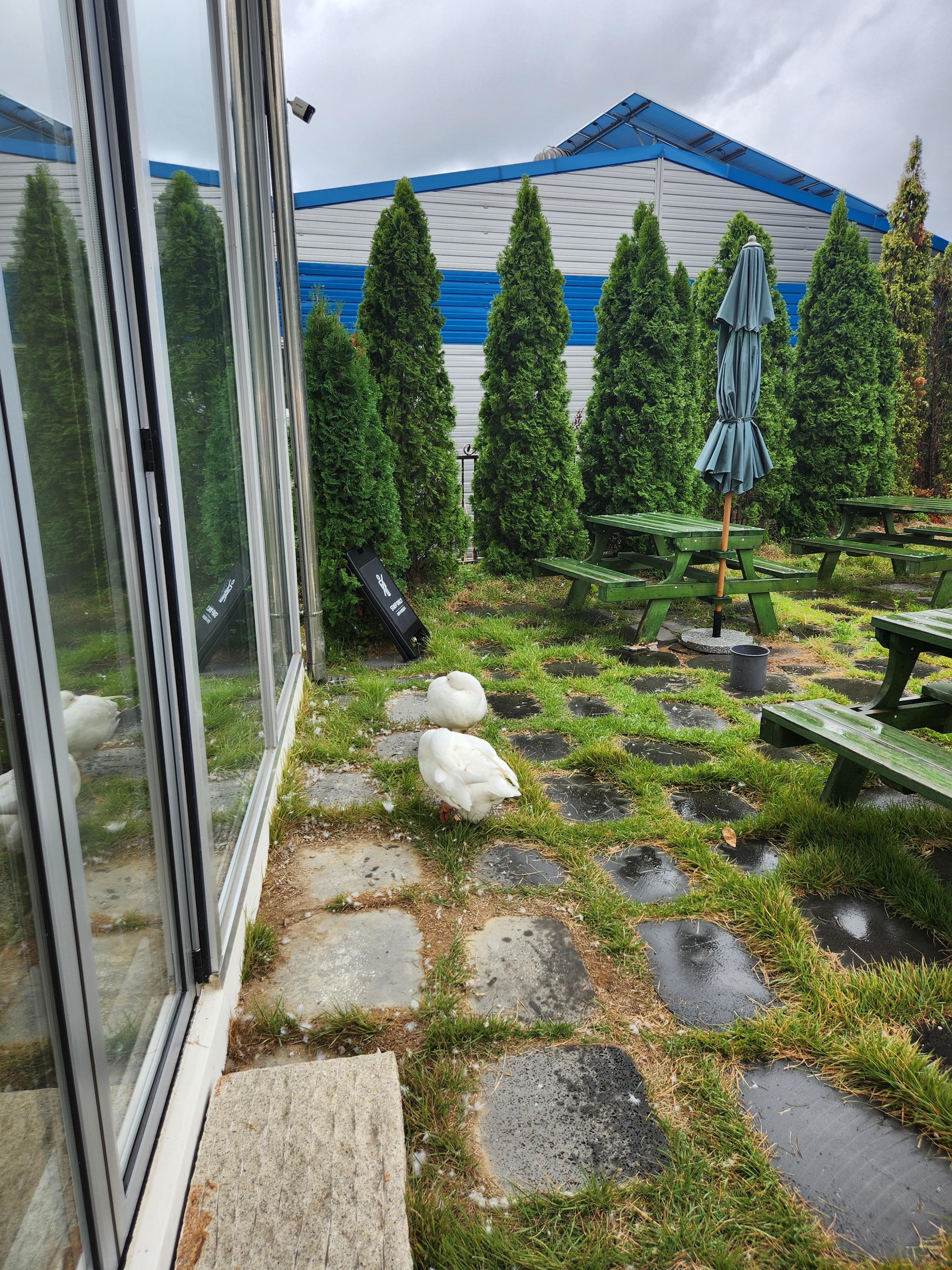오리가 여기저기 돌아다니고 있었다.