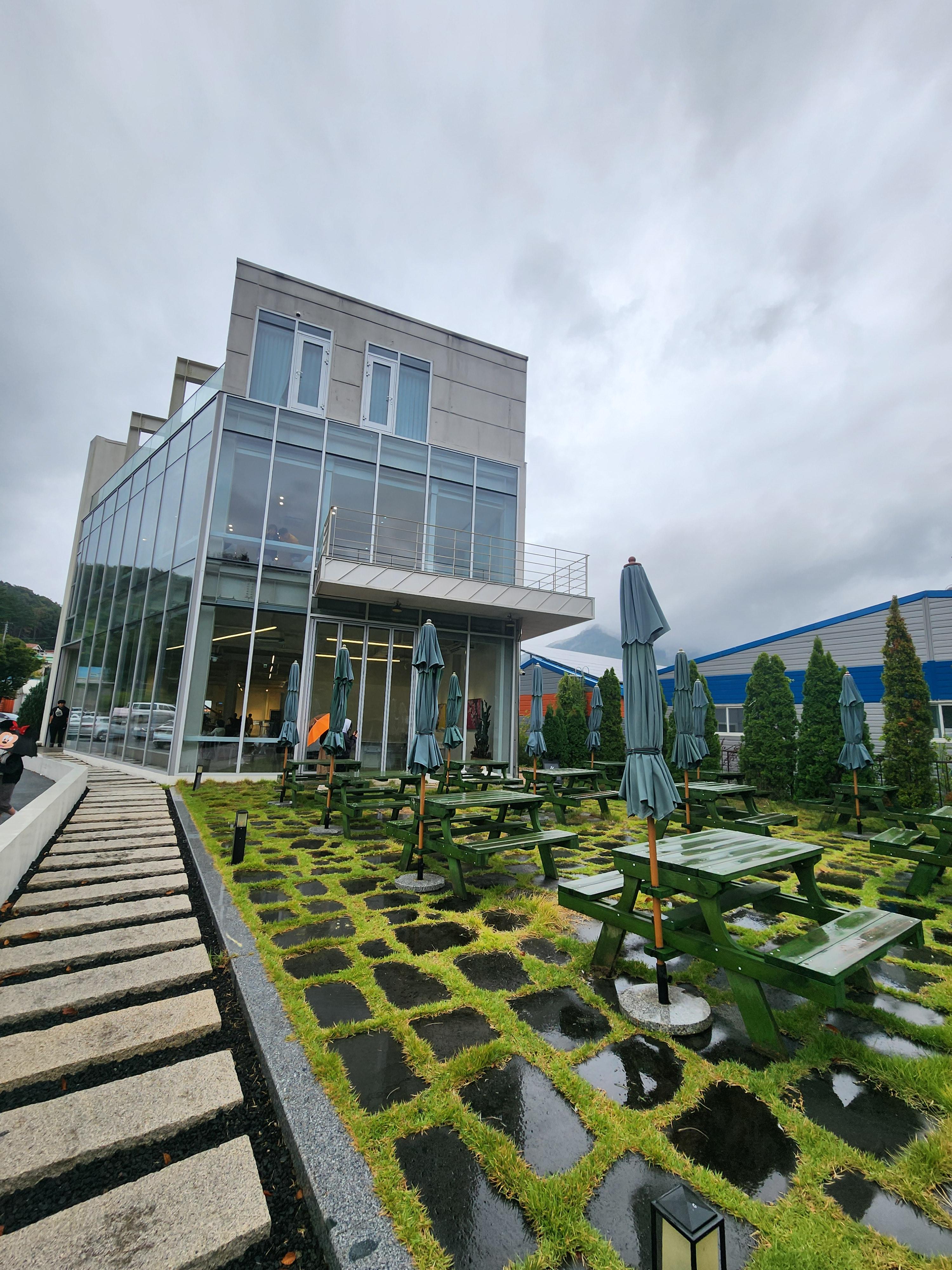 비가 왔어 그런지 통창이 더 아름다웠다.
