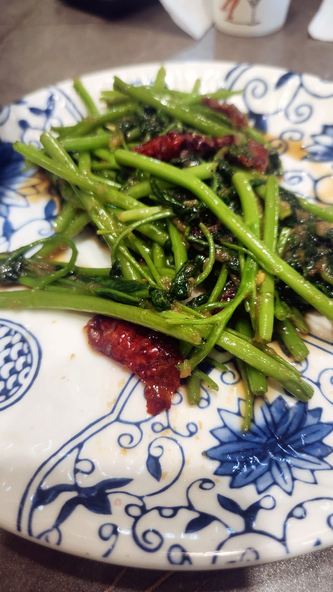 공심채 볶음은 아삭한 식감이 잘 살아 있었고 마늘향이 은은하게 올라왔습니다. 짭짤한 간이 쌀국수와 잘 어울렸습니다