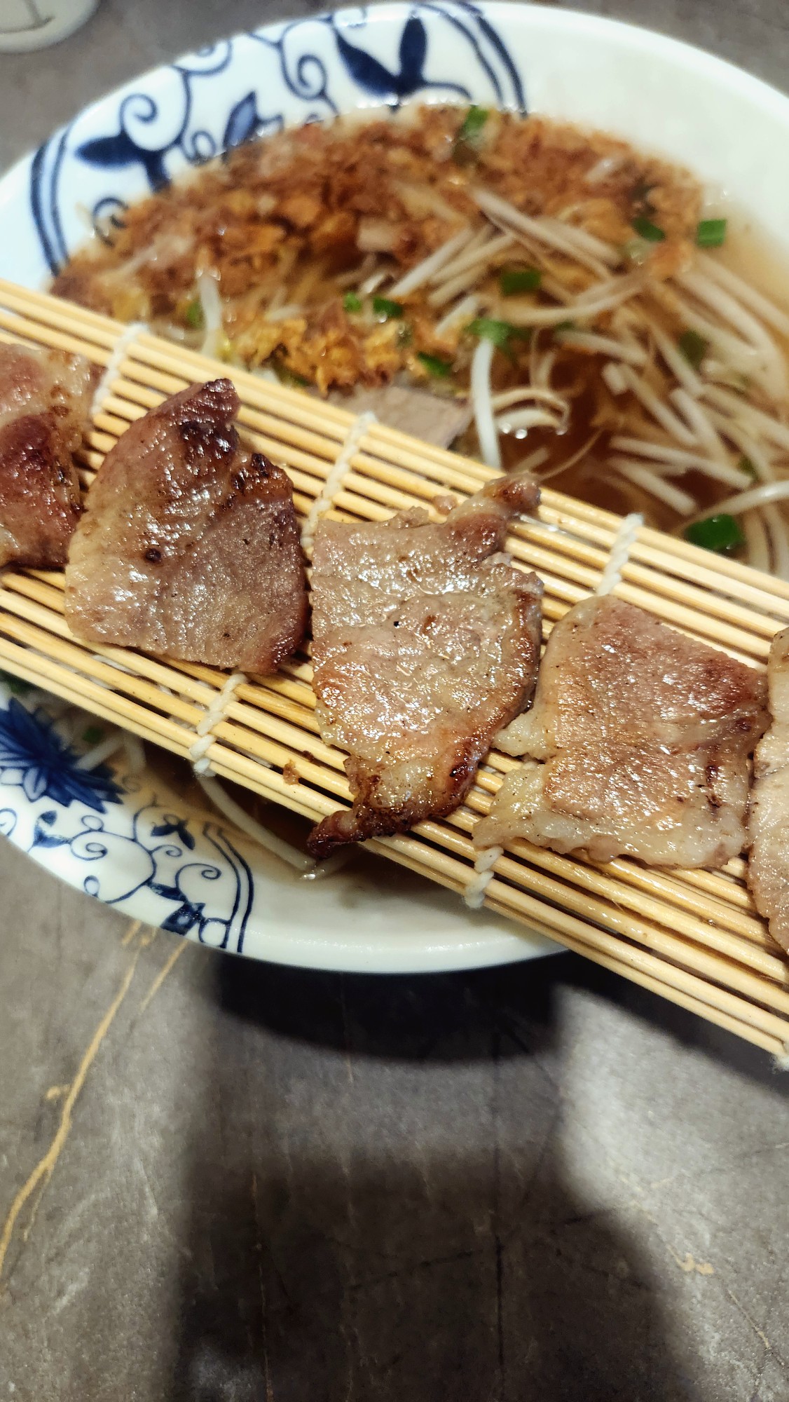 비주얼은 전체적으로 깔끔했습니다. 맑은 국물 위에 고기 토핑이 넉넉히 있습니다.
