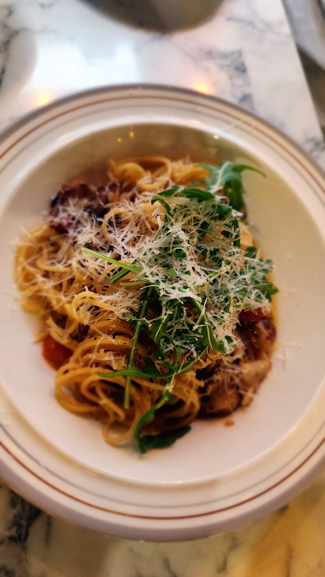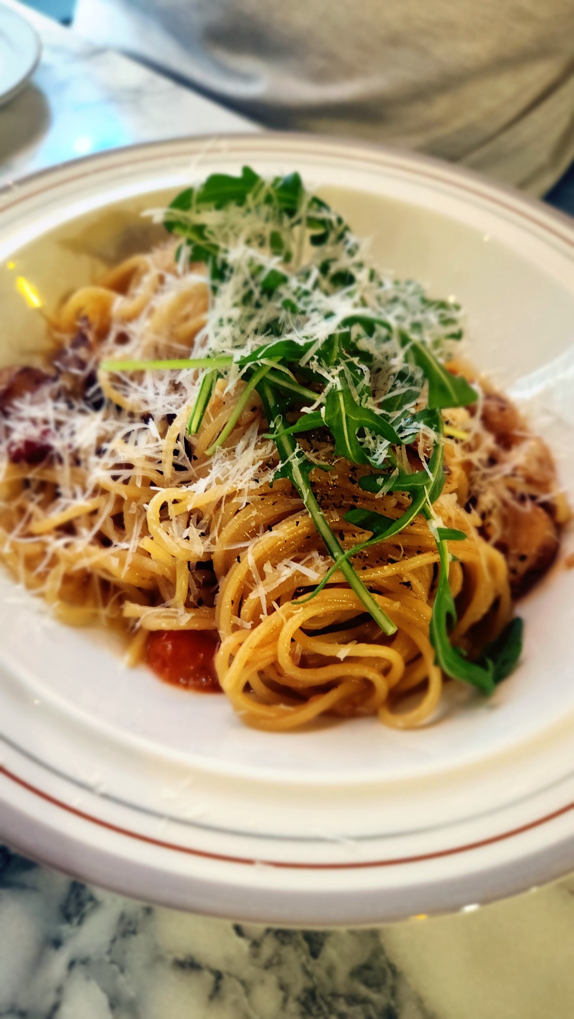 위에 뿌려진 루꼴라와 치즈 가루가 시각적인 만족감까지 더해줍니다.