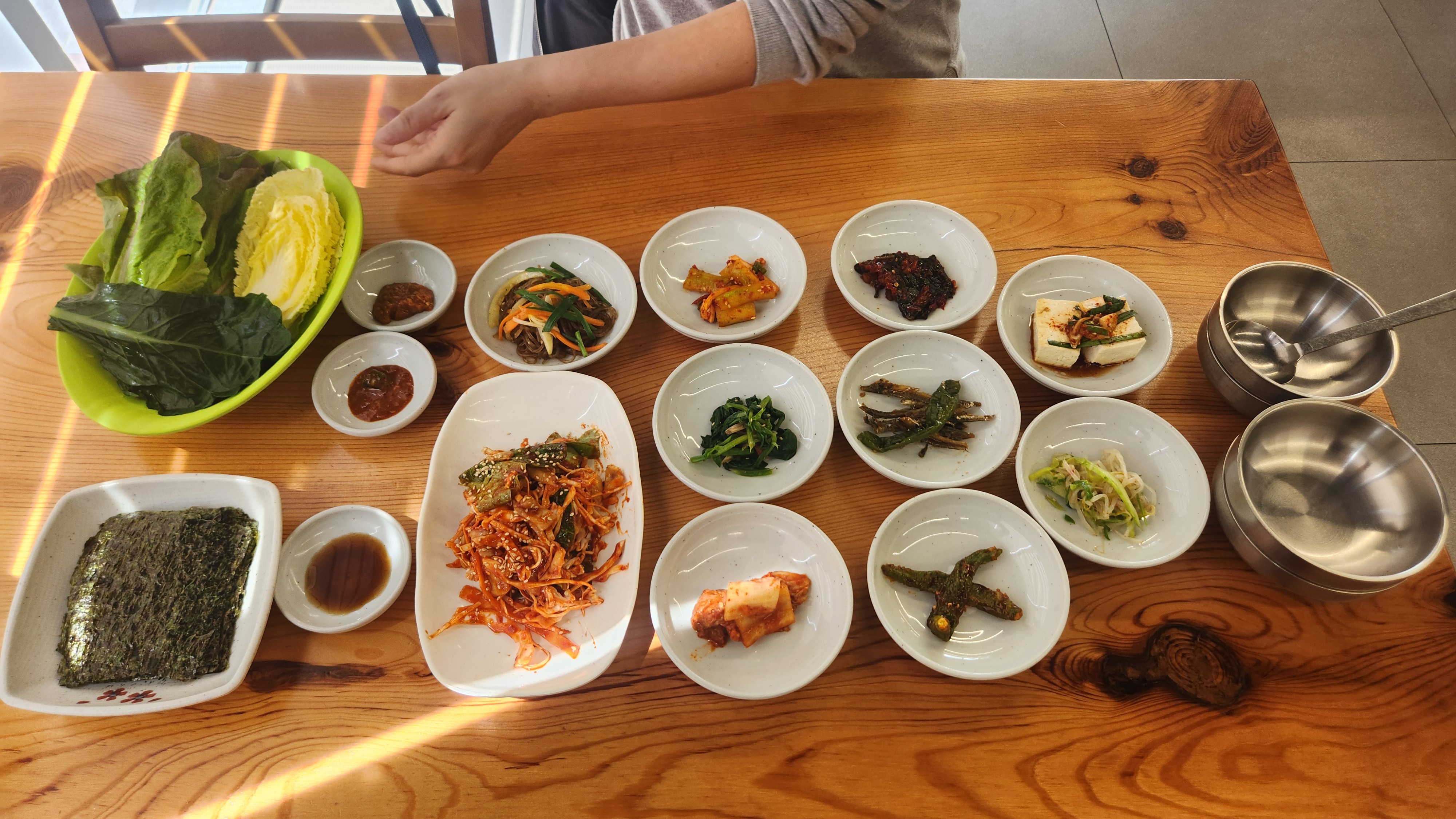 잠시 기다리니 테이블 가득 찬들이 차려졌는데 그 가짓수와 정갈함에 감탄이 절로 나옵니다.