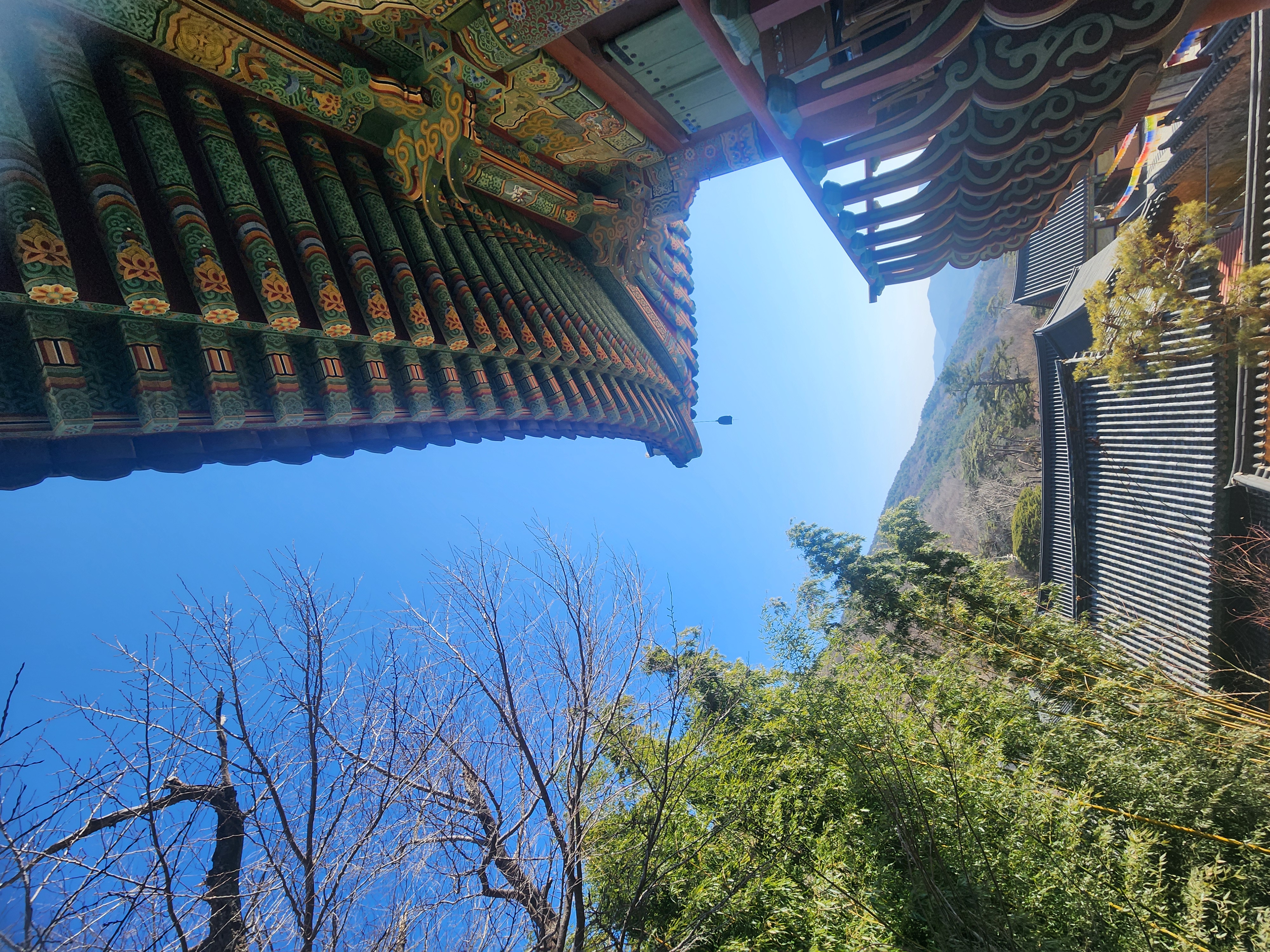오래된 목조 건물들의 단청은 세월의 흔적을 담고 있었고 흙과 돌로 쌓은 돌담은 자연과 하나 된 듯한 느낌을 주었습니다.