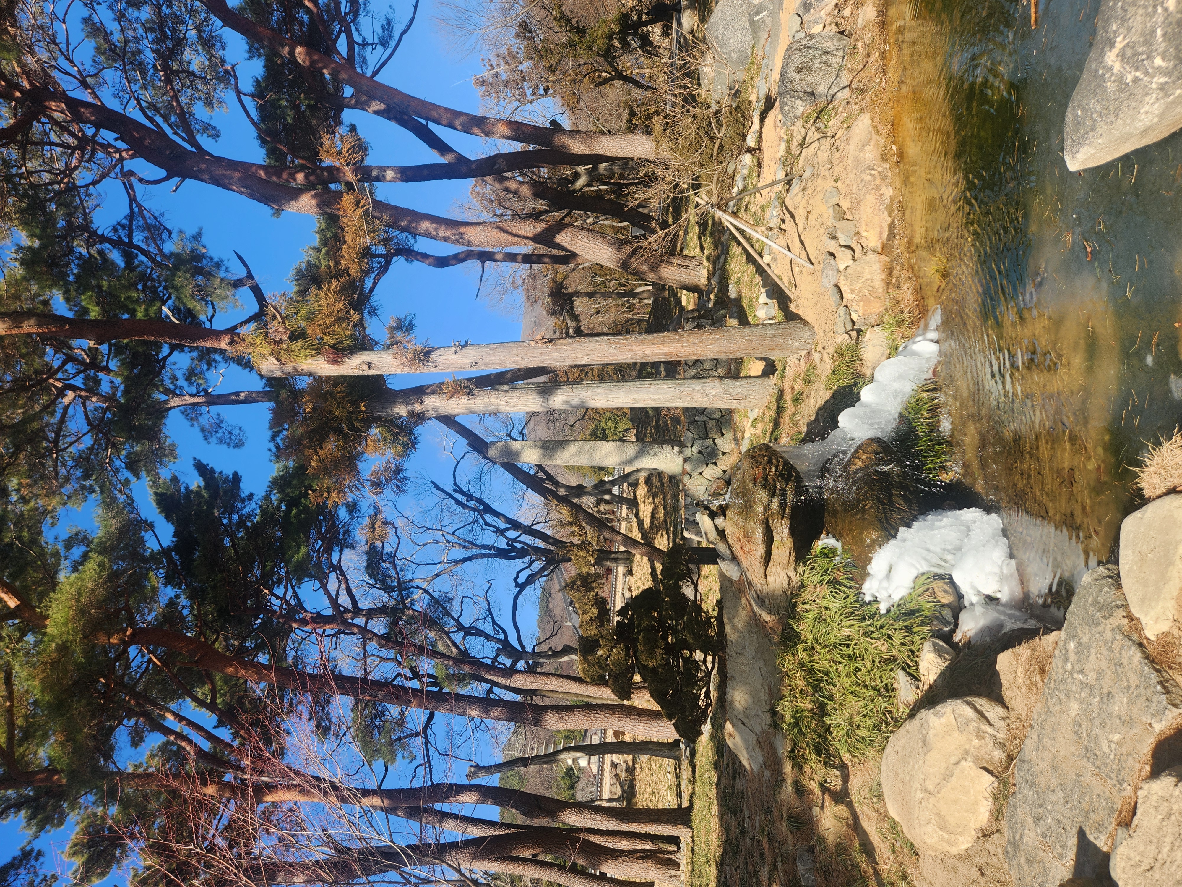 아직 완전히 얼음이 녹지 않아 작은 폭포 물줄기가 얼어붙어 있는 모습이 운치 있었습니다.