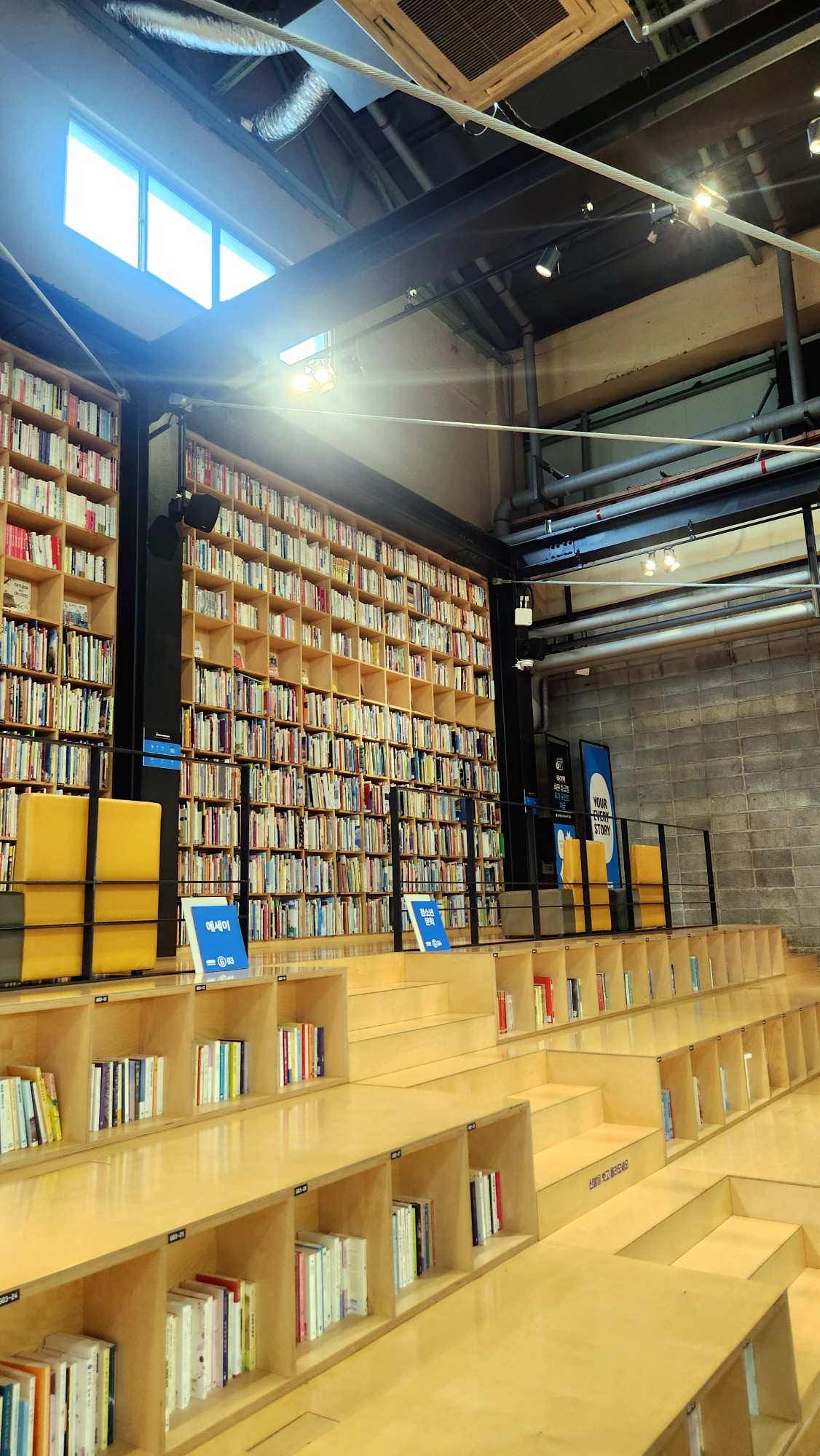 서점 곳곳에는 이곳이 공장이었음을 증명하는 흔적들이 남아 있습니다.