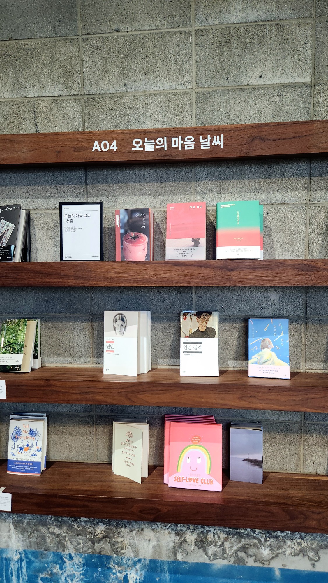 청춘 연인 인간 실격등 우리가 살아가며 마주하는 감정의 단어들이 책장 위에 적혀 있습니다.