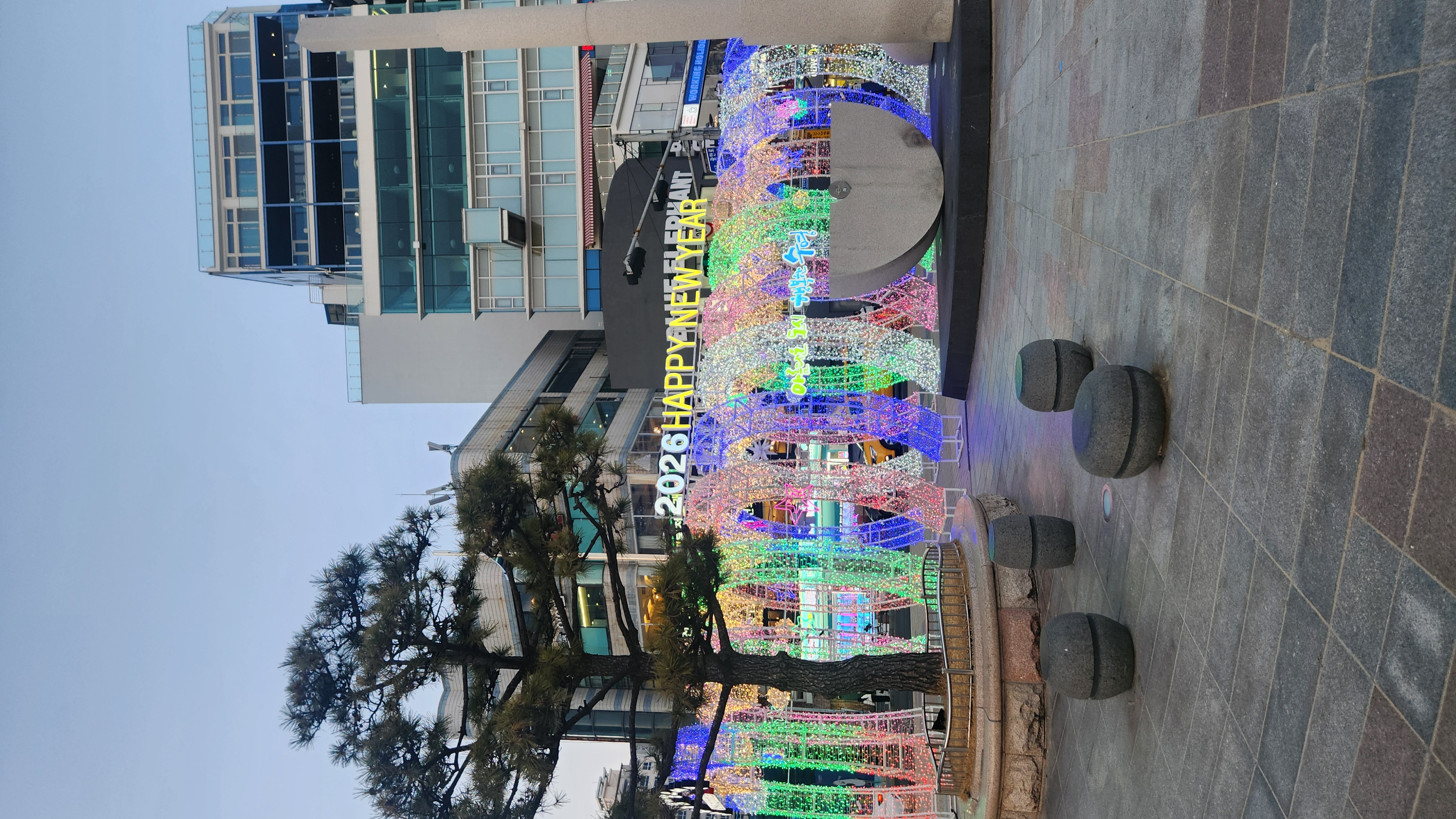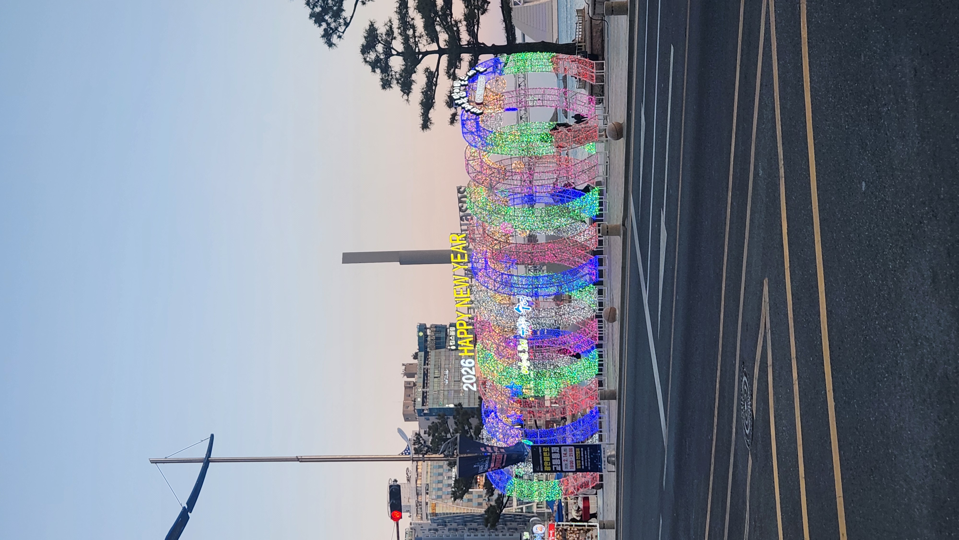 무지갯빛으로 반짝이는 원형 터널 위에는 '2026 HAPPY NEW YEAR'라는 문구가 적혀 있어 새해 기분을 제대로 낼 수 있었답니다.