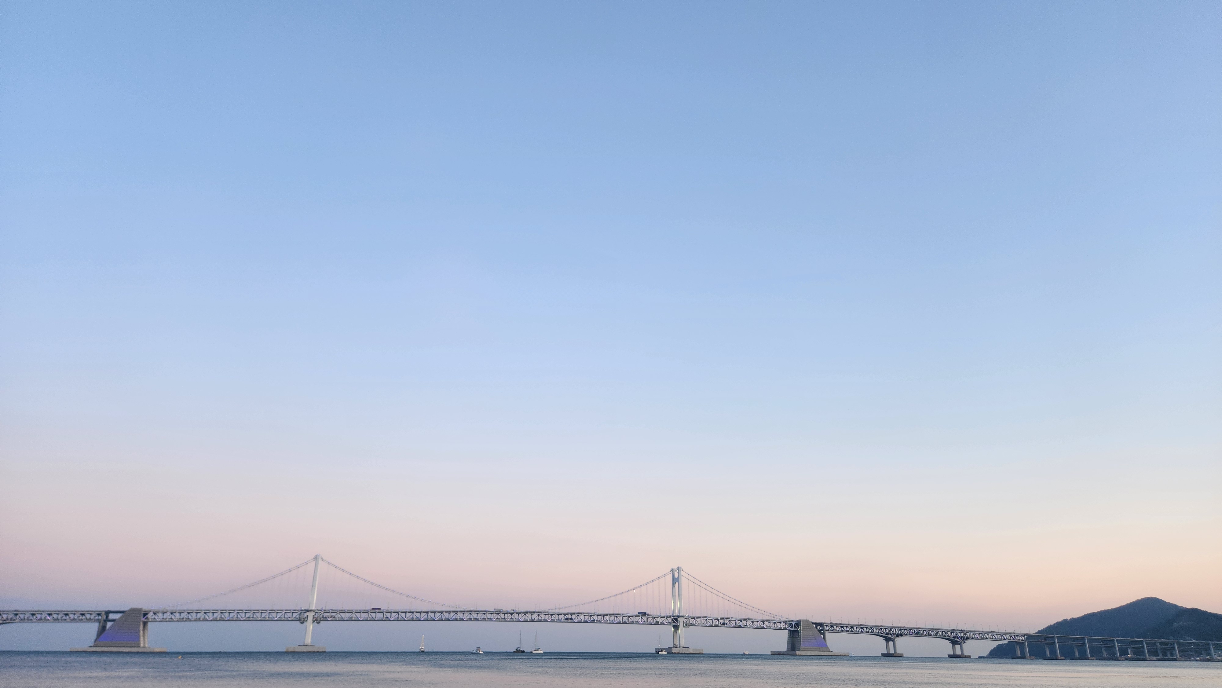 노을이 살짝 지기 시작하는 하늘과 수평선 너머의 광안대교, 그리고 붉은 글씨가 어우러져서 막 찍어도 '인생샷'이 나오더라고요. 밤이 되면 조명이 들어와서 훨씬 더 로맨틱한 분위기를 자아냅니다.