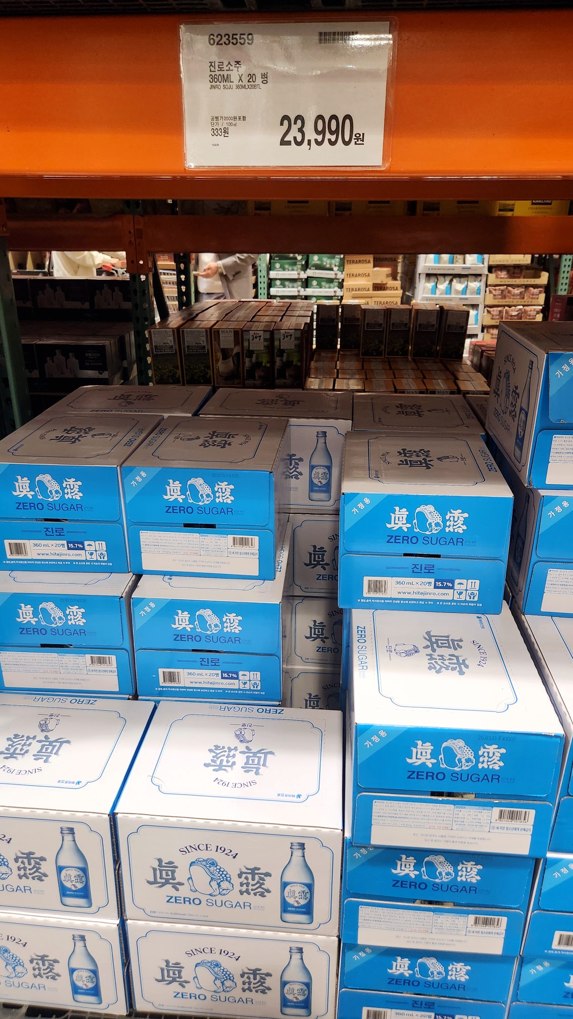 부산하면 역시 소주죠~ 코스트코 수영점은 로컬 브랜드인 대선부터 전국구 진로까지 박스 단위로 저렴하게 판매하고 있습니다.