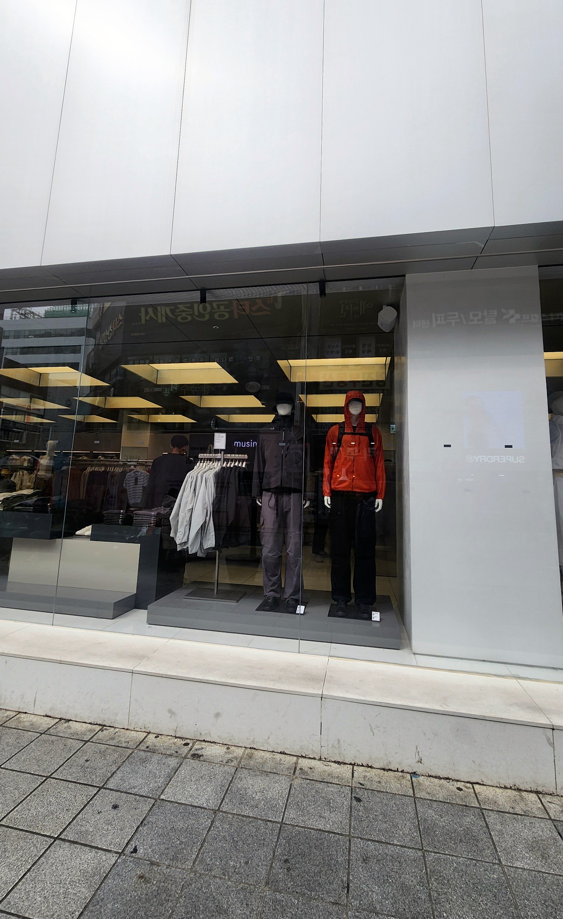 쇼윈도를 장식한 마네킹들은 차분한 그레이 컬러와 강렬한 레드 컬러의 윈드브레이커를 착용하고 있었는데요.