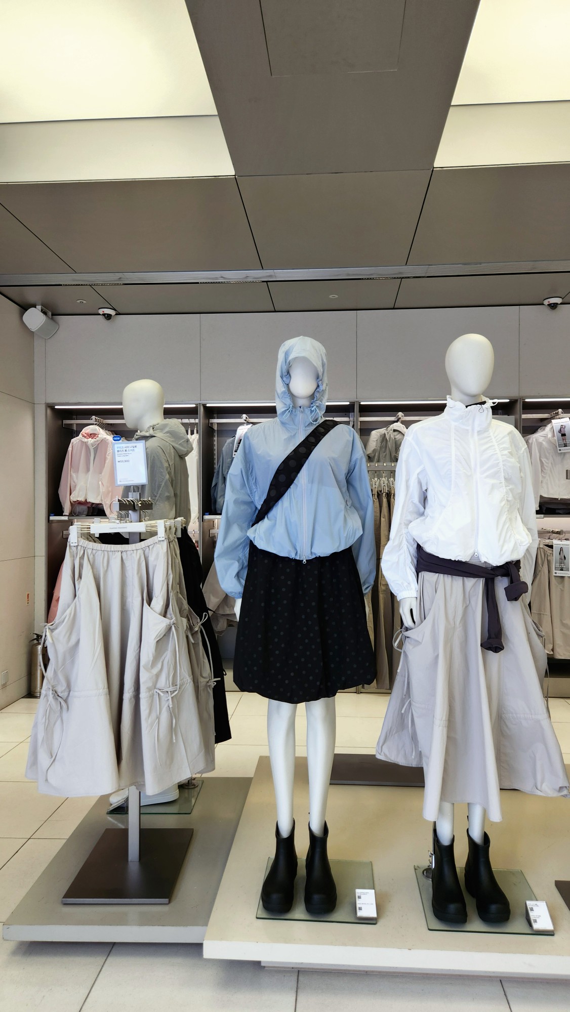 함께 디스플레이된 벌룬 스커트와 믹스매치한 코디는 스포티하면서도 여성스러운 매력을 동시에 보여줍니다.