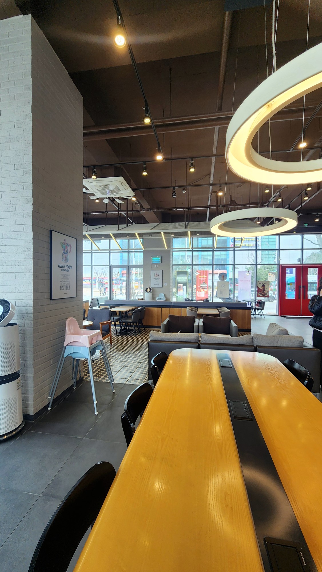 매장 내부가 워낙 넓어 좌석 간 거리 두기가 자연스럽게 이루어지며 이는 대화의 프라이버시를 중요하게 생각하는 분들께 큰 장점입니다.