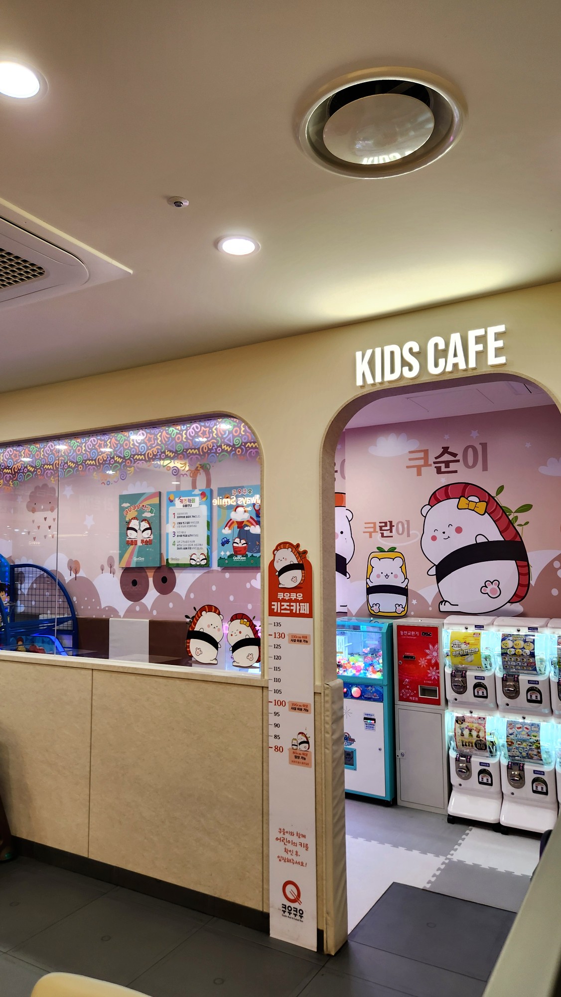 귀여운 쿠순이 쿠란이 캐릭터로 꾸며진 놀이방에는 아이들이 좋아하는 뽑기 기계와 정글짐이 있어 부모님들이 마음 편히 식사할 수 있는 환경을 만들어 줍니다.