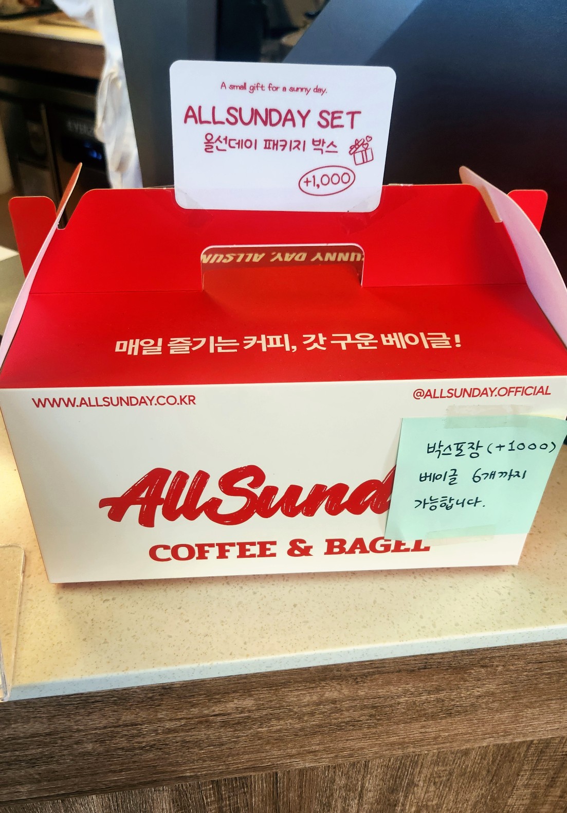 올선데이 세트(패키지 박스)는 1000원 추가 시 6개까지 예쁘게 담아주어 선물용으로 제격입니다.