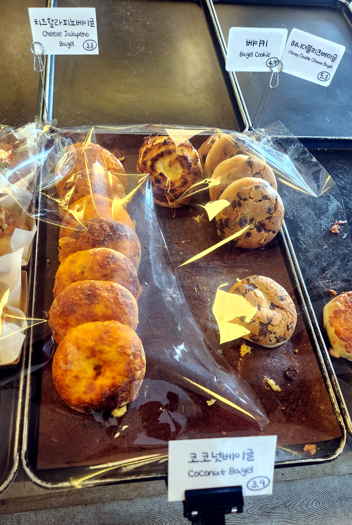 * 치즈 할라피뇨 베이글 (3800원): 짭짤한 체다치즈와 매콤한 할라피뇨가 조화를 이뤄 느끼함을 싹 잡아줍니다. 식사 대용으로 강력 추천합니다.