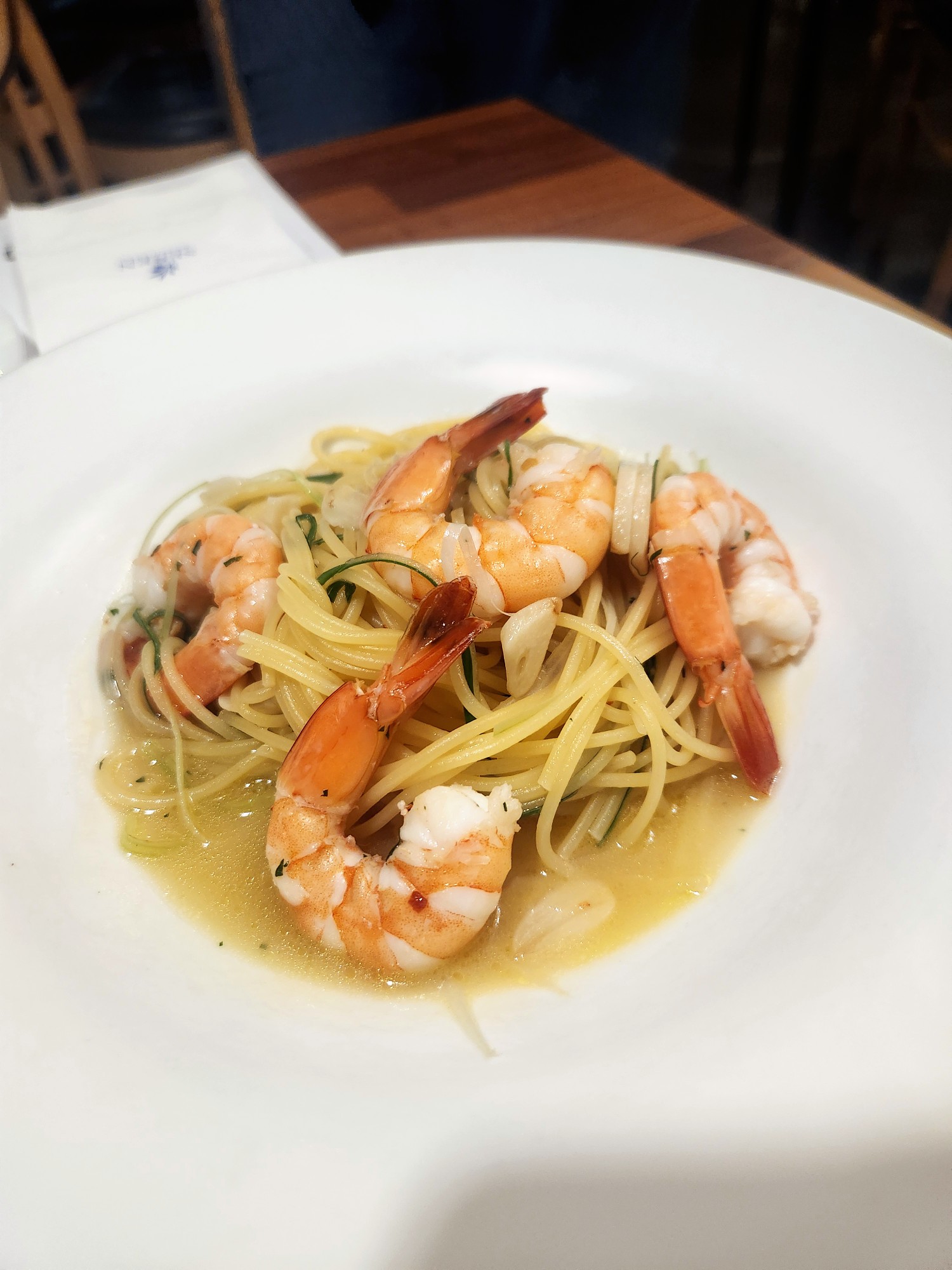 마늘과 올리브오일의 풍미가 면에 깊게 배어 있었고 큼직한 새우가 넉넉히 들어가 있어 씹는 재미가 쏠쏠했습니다.