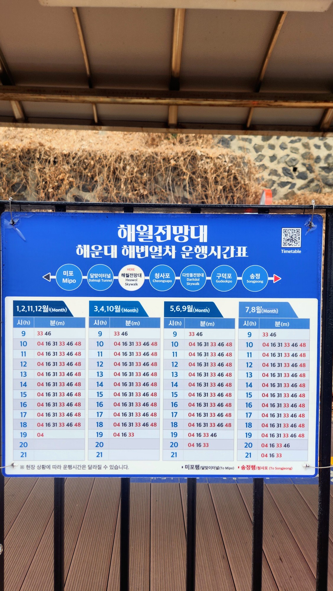 주의사항 달맞이터널이나 해월전망대에서 내려서 구경한 후 다음 열차를 타고 이동하려면 배차 시간을 미리 계산해야 합니다.