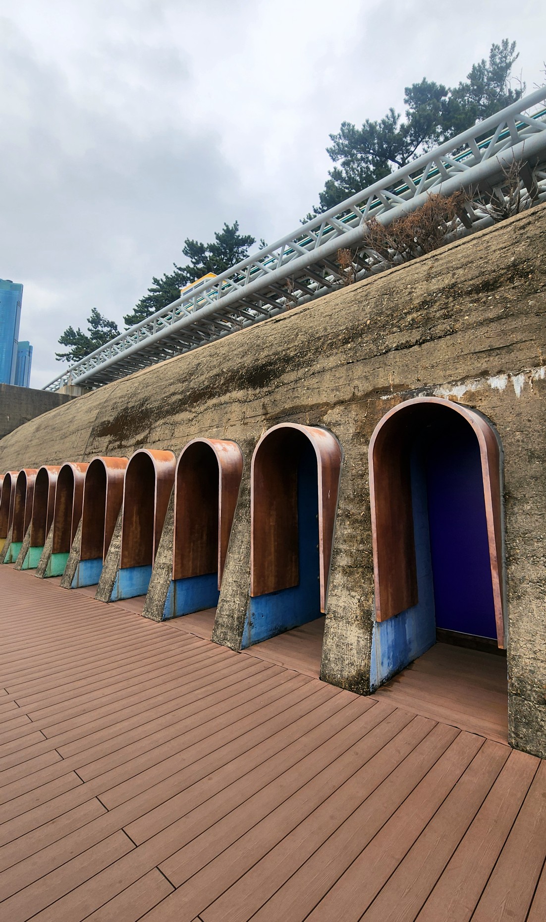 원래는 삭막한 콘크리트 구조물이었으나 현재는 지역 예술가들과 협업하여 멋진 포토존으로 재탄생했습니다.